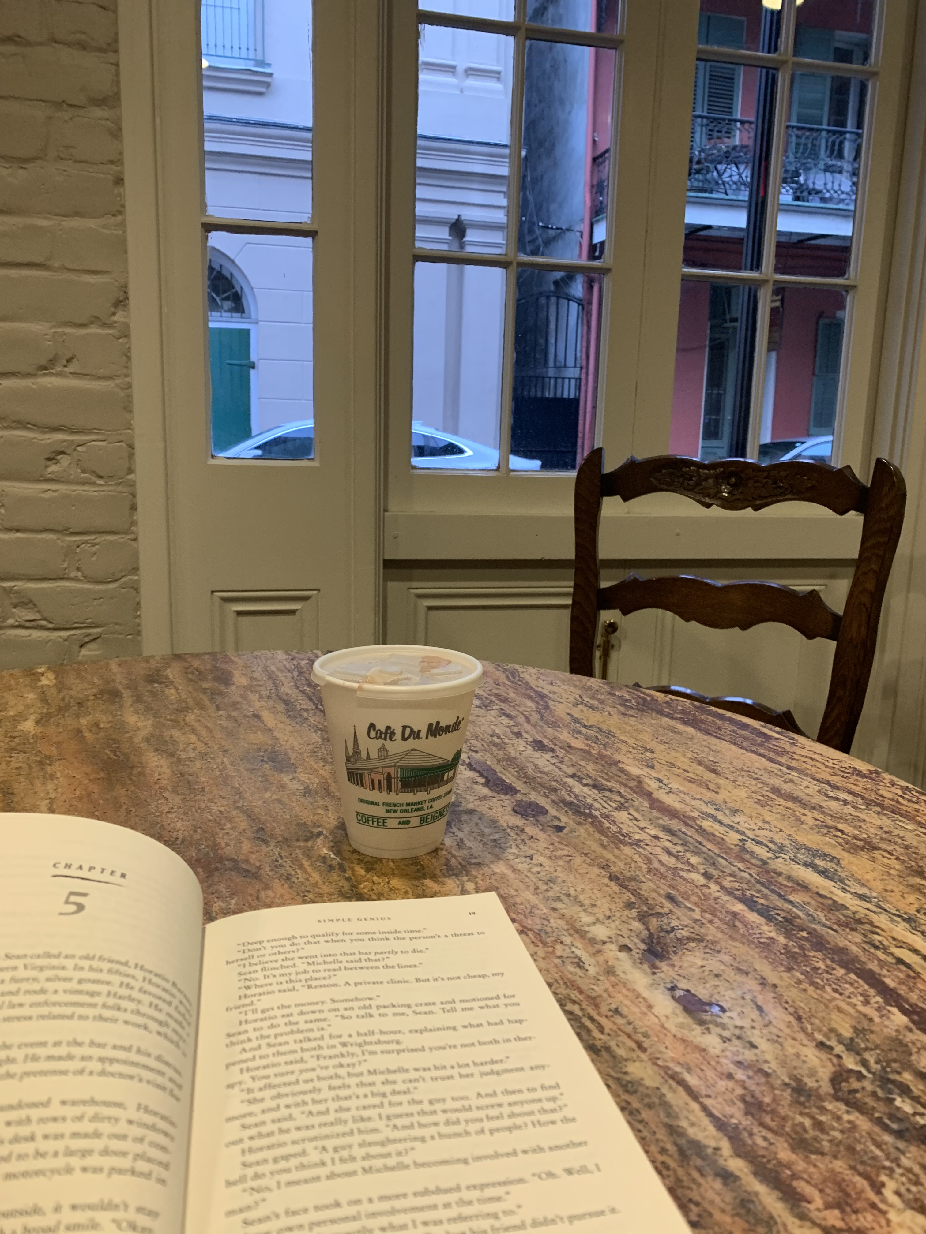 My family and I took a six-day trip to the Big Easy for Thanksgiving, where we also met up with close family friends to enjoy this unique city. We spent most of the trip exploring, sightseeing, shopping, and eating. The weather was chilly and a bit rainy for most of the trip, but it was still decent weather for all of the walking we did. We stayed right off of Jackson Square, so we were central to everything. We only left the French Quarter once to go to a restaurant, but otherwise, we walked everywhere and just enjoyed being in the Quarter. And of course, I made time to read and write every day – the hotel courtyard was so inspirational for writing and there was a warm, quiet spot inside the hotel common room for reading.